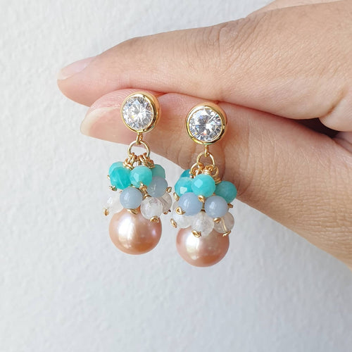 Pink Paradise- Pink Edison pearl with gemstone clusters