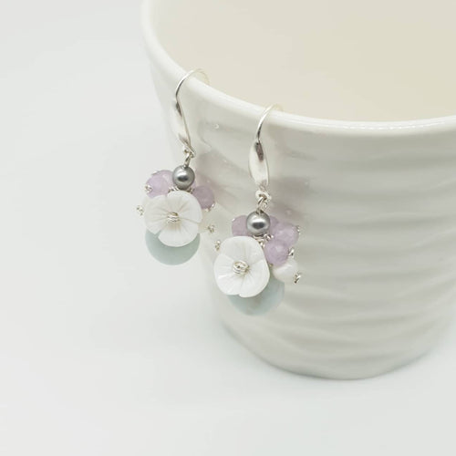 Burmese Jadeite cluster with carved mother of pearl flower drop