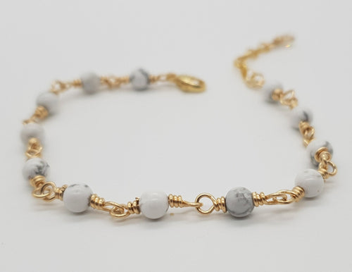 Prisma Jewel - Handmade Jewellery - Bracelets - Wirewrap - Gold Filled - Howlite - White - Grey