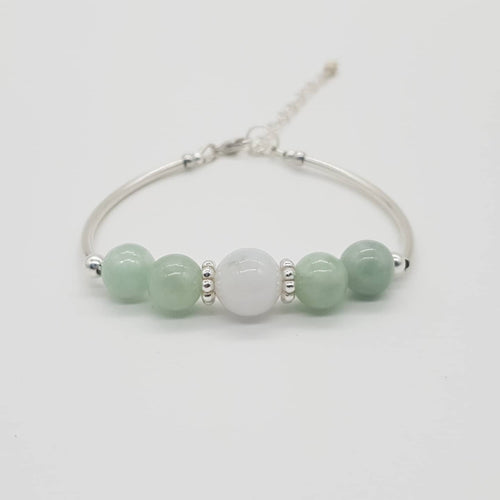 Prisma Jewel - Handmade Jewellery - Bracelets - Grade A Jade - Burmese Jade - Green - White - Silver