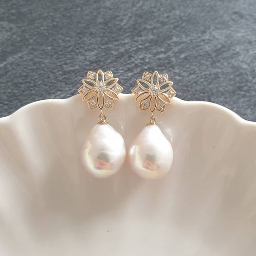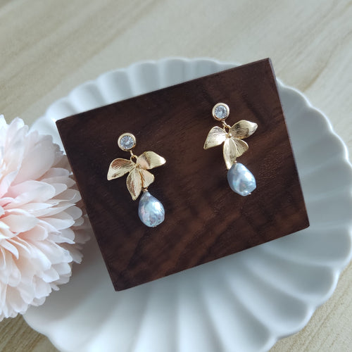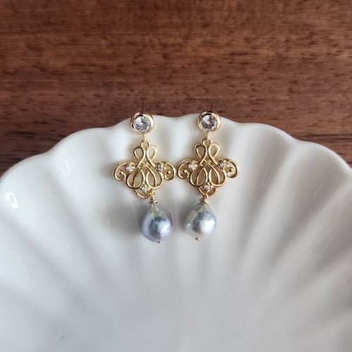 Grey Akoya Baroque Pearls with intricate style and round CZ studs