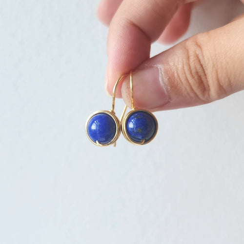 Handcrafted Lapis Lazuli Wire-Wrapped Earhook Earrings