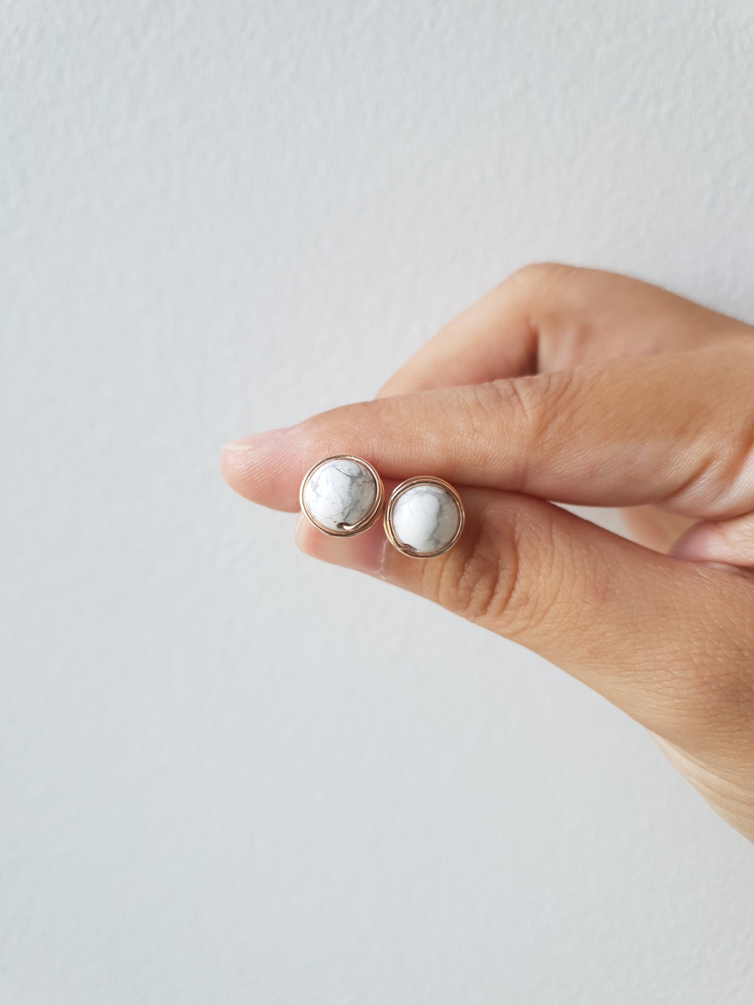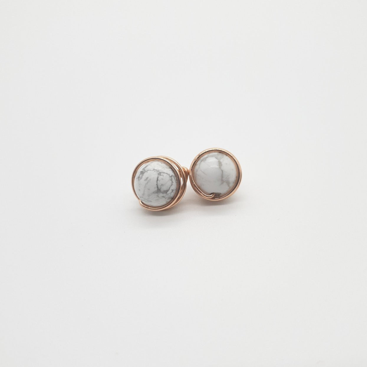 Prisma Jewel - Handmade Jewellery - Earstuds - Howlite - White - Grey - Wirewrap